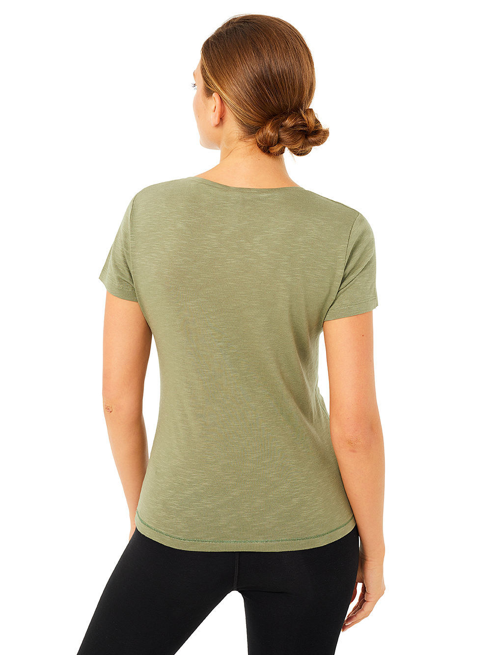 Dieses leicht taillierte Basic T-Shirt mit klassischem Rundhalsausschnitt funktioniert immer – ob beim Yoga oder als Daywear.