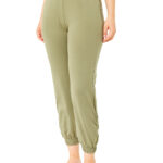 Schwarze Pant mit ausgestelltem Bein aus nachhaltigem Tencel. Durch hohen Stretchanteil und weiches Tencelmaterial super angenehm zu Tragen. Die Länge geht bis zum Knöchel bei 1,70m Größe.