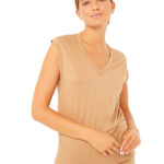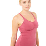 Unser Topseller seit vielen Jahren ist aus nachhaltiger Tencel-Baumwollmischung gefertigt. Die überkreuzten Bänder im Rücken machen eine schöne Optik. Das zimtfarbene Top sitzt bei jeder Bewegung, ist körpernah geschnitten und reicht bis zur Hüfte bei einer Größe von 1,70m.